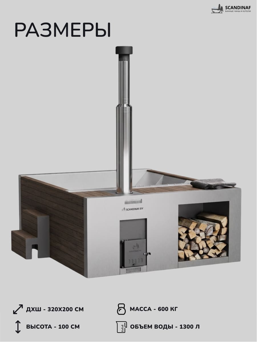 Купель на дровах SCANDINAF – это премиальный уличный банный чан, созданный для максимально комфортного парения на вашем участке круглый год.