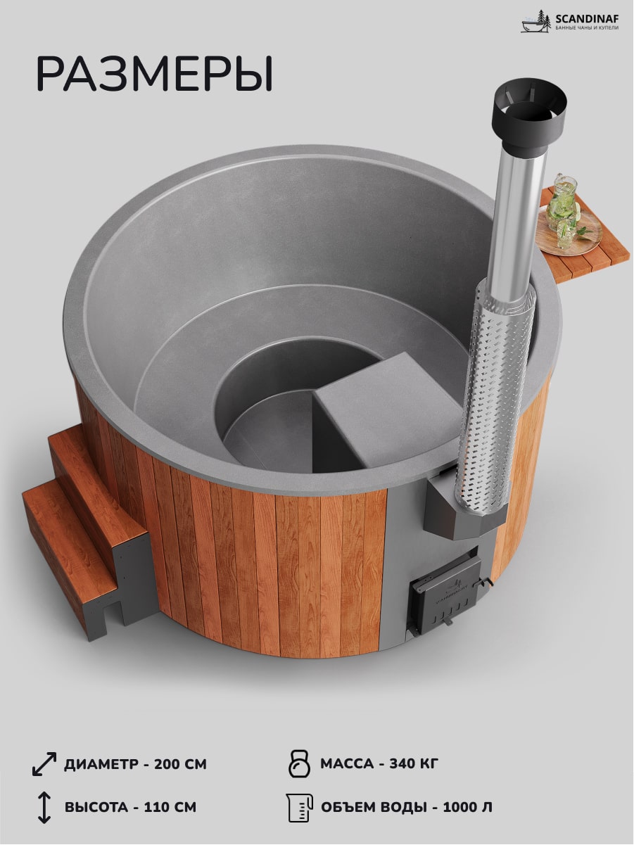 Купель с подогревом на дровах Scandinaf Furako 200RG, 4-6 чел., красное дерево, серый