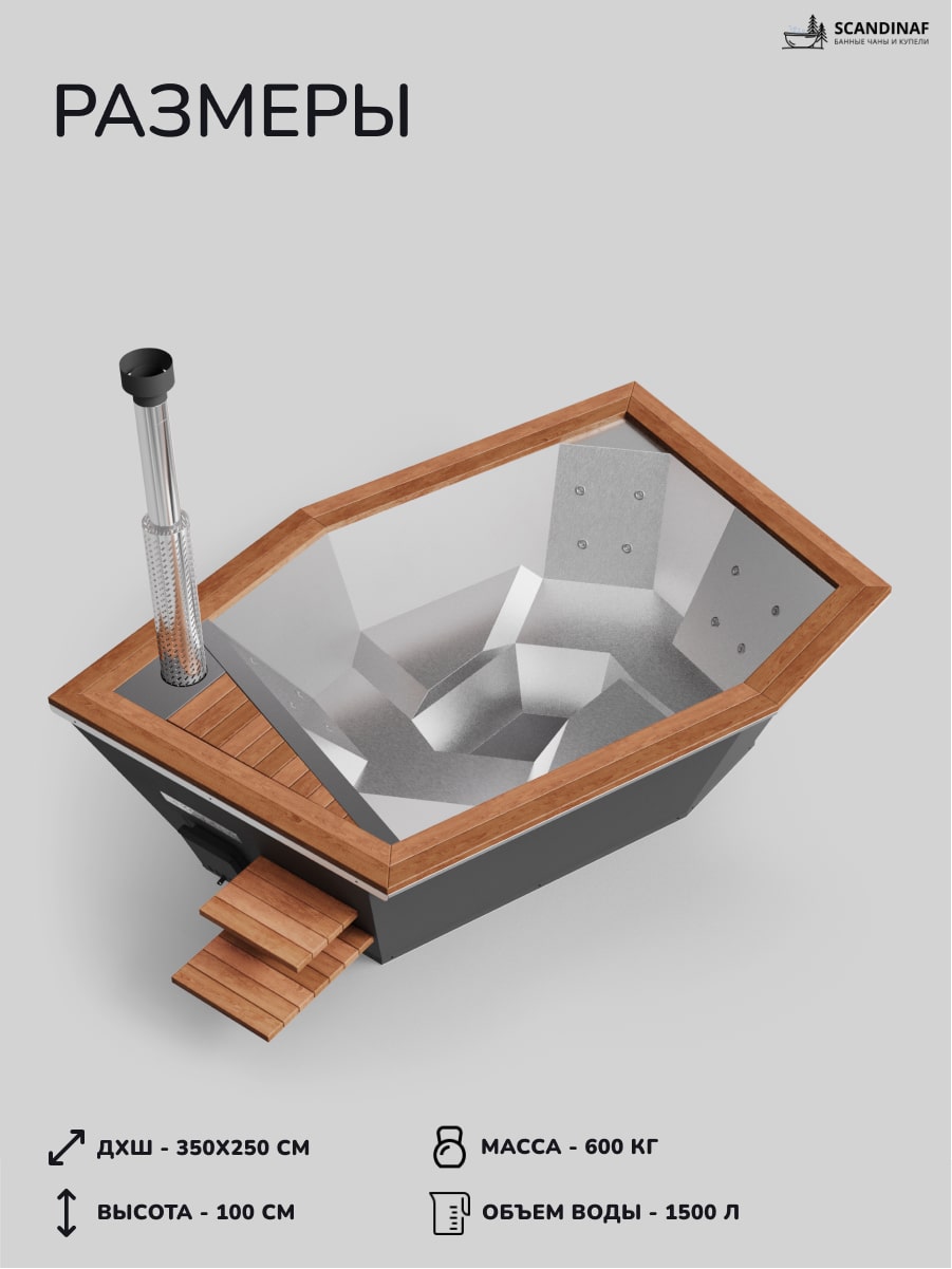 Купель на дровах SCANDINAF – это премиальный уличный банный чан, созданный для максимально комфортного парения на вашем участке круглый год.