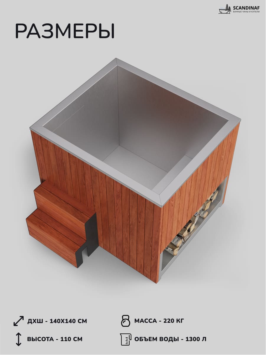 Ледяная купель Scandinaf Arctic 140R, 1-2 чел., AISI 304, красное дерево