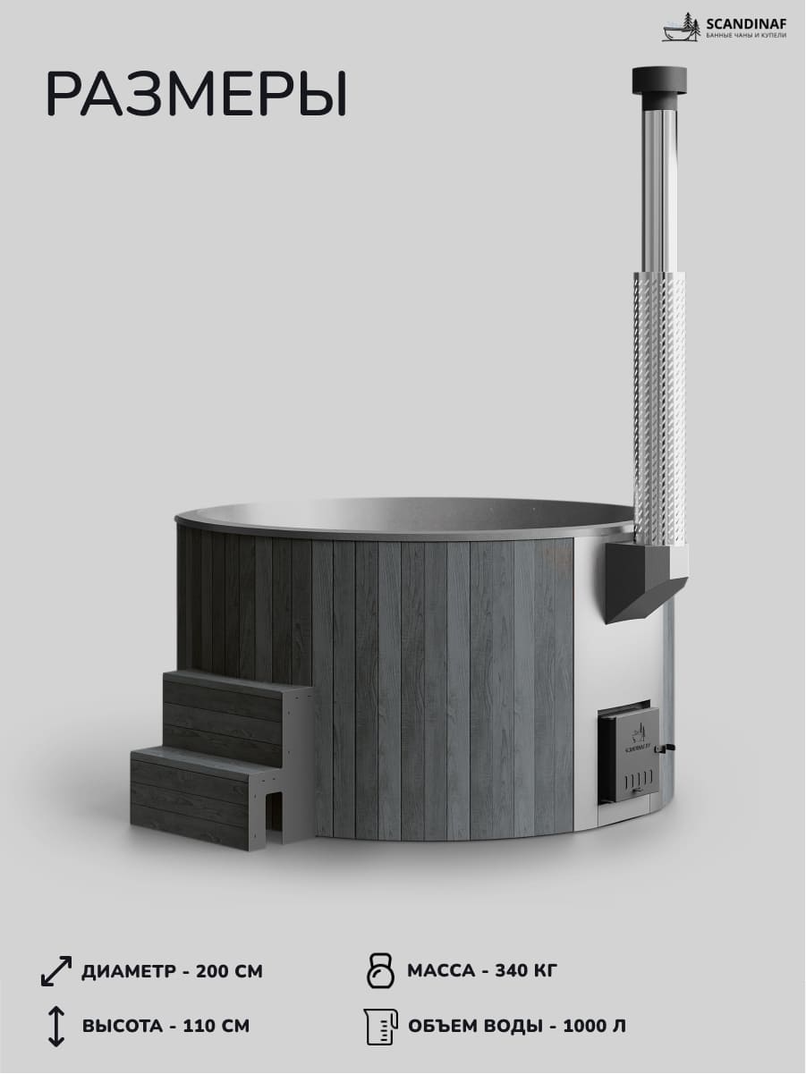 Купель на дровах SCANDINAF – это премиальная уличная купель, созданная для максимально комфортного отдыха и парения на вашем участке круглый год.