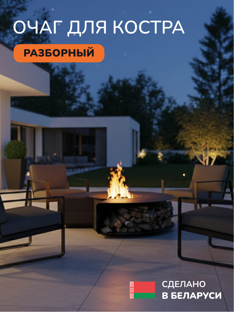 🔥 Удобная конструкция — центральная чаша для огня окружена практичной полкой для хранения дров, все необходимое всегда под рукой